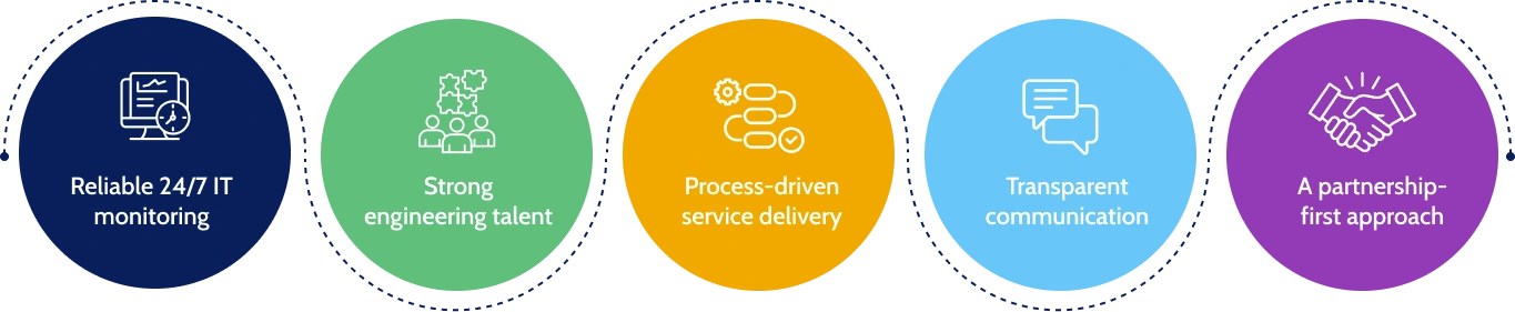 From strategic modernization programs to fully managed operations, our solutions cover the entire IT lifecycle. TransformAxis guides businesses through large-scale transformation journeys, while our OpsElevate Accelerator strengthens governance, processes, and automation across IT functions. With BOTSphere, we enable organizations to build internal capabilities through a proven Build-Operate-Transfer model.